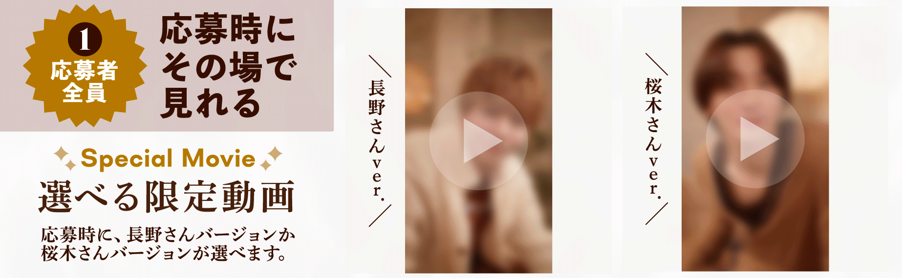 ① 応募者全員にプレゼント/応募時にその場で見れる! 選べる限定動画